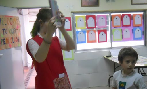 Miss Barby playing Chinese Whisper with pictures and mimicry.